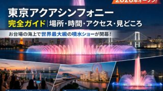 東京アクアシンフォニーはどこで見る?場所・時間・アクセス・見どころ完全ガイド東京アクアシンフォニーは、お台場海浜公園の海上に整備された世界最大級の巨大噴水です。高さ約150メートル、横幅約250メートルの大規模な噴水が、音楽や光の演出と組み...
