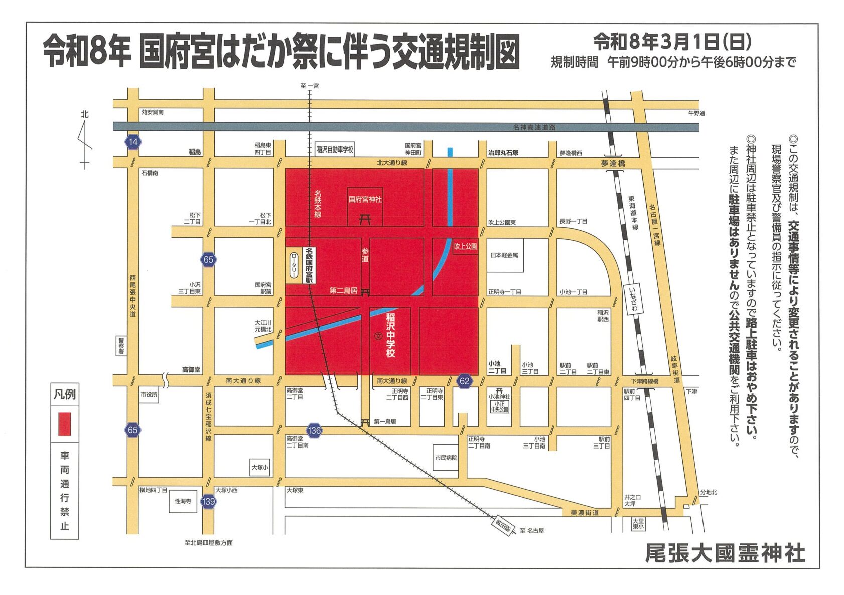 本番当日は、神社周辺道路で大規模な交通規制が実施されます。