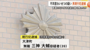 熊本県大津町の商業施設で、面識のない女子生徒に対する不同意わいせつ事件が発生し、39歳無職の男が現行犯逮捕されました。