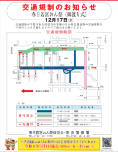 - 規制エリア:JR奈良駅前、近鉄奈良駅前、三条通り、登大路、高畑町、春日大社周辺など、お渡り式ルート全体。