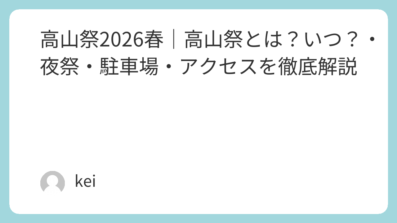 この記事では、2026年春の高山祭について、日程・スケジュール・屋台・アクセス・駐車場・混雑回避・屋台会館・春と秋の違いまで、初めて行く人が迷わないように整理してまとめました。祭りの雰囲気だけでなく、現地でどう動くと楽かまで具体的に分かる内容にしています。
