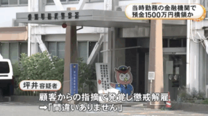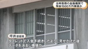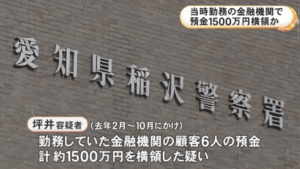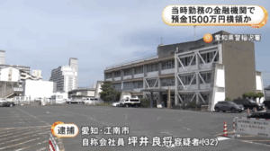 2025年12月、愛知県の金融機関で元社員が顧客の預金約1500万円を横領したとして、坪井良将容疑者が逮捕されました。