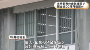- 坪井容疑者は、渉外担当として個人・企業の預金を扱う立場にあった。